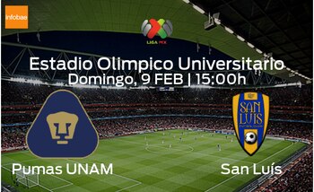 El próximo domingo a las 15:00 se jugará el partido de la quinta jornada de la Liga MX de Clausura, en el cual veremos disputarse la victoria a Pumas UNAM y a San Luís en el Estadio Olimpico Universitario.