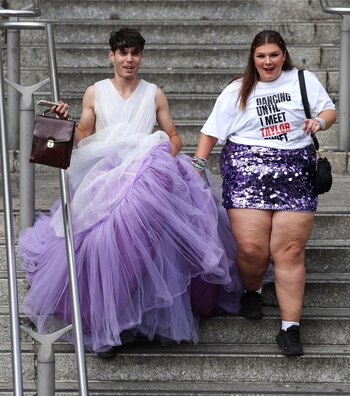 Sombreros de cowboy, kilos de purpurina y decenas de conjuntos en honor a cada una de las "eras" discográficas de la artista marcaron la vestimenta de los 'swifties' asistentes al concierto, que se acercaron hasta el lugar del evento con varias horas de antelación y aprovecharon la espera para intercambiarse entre sí las célebres "pulseras de la amistad" en un ritual entre sagrado y festivo.