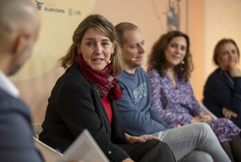 En la mesa redonda han participado Marta Velasco, presidenta de la Academia de Cine y productora, acompañada de los productores Agus Jiménez, Olmo Figueredo, Bernabé Rico y Manuela Ocón.