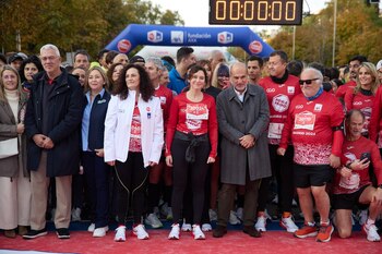 Entre las autoridades que han respaldado esta convocatoria y han portado la pancarta de Ponle Freno, con su lema 'No te pares, hoy correr salva vidas', han estado la presidenta de la Comunidad de Madrid, Isabel Díaz Ayuso, el consejero de Cultura, Turismo y deporte de Madrid, Mariano de Paco; Olga Sánchez, consejera delegada de AXA y presidenta de la Fundación AXA; Josep Alfonso, director general de la Fundación AXA; Javier Bardají, consejero delegado Atresmedia, entre otros.