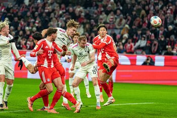 Tras el susto, el Bayern aceleró guiado por los desbordes de Olise y en el minuto 20 el meta Daniel Batz reaccionó con una gran parada tras un cabezazo a quemarropa de Harry Kane. En el 23, apareció otra vez Batz y desvió a saque de esquina un remate de Olise.