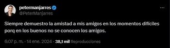 Siendo firme en su posición y sin pelos en la lengua, el cantante vallenato se pronunció en su cuenta oficial de X (antes Twitter) acerca de los reclamos de la audiencia. “Siempre demuestro la amistad a mis amigos en los momentos difíciles, porque en los buenos no se conocen los amigos”, trinó.