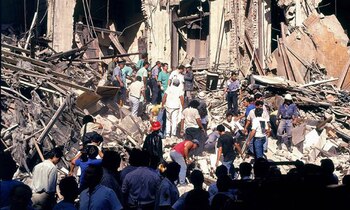 „An diesem Tag sind wir durch die Luft geflogen.“ Einer der Überlebenden näherte sich dem Herz der Finsternis, das nicht verschwindet. Der erste Terroranschlag in Argentinien verschwindet nicht, da er die gleichen Besonderheiten wie der zweite aufweist. In gewissem Sinne tritt dies weiterhin auf, weil keine Gerechtigkeit geübt wurde; Ungerechtigkeit ist eine Bombe, die sich mit einer weiteren Bombe wiederholt und verschlechtert. Der Oberste Gerichtshof, der die Untersuchung durchgeführt hat, wies auf den Iran hin und wird zwei Jahre später in der AMIA wiederholt. Einsatz diplomatischer Privilegien zur Durchführung von Logistik- und Terroraktionen durch Streitkräfte wie den Islamischen Jihad, den tötenden Zweig der fundamentalistischen Gruppe Hisbollah.