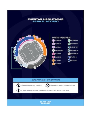“Nuestra casa albergará a los hinchas para que puedan seguir en Buenos Aires la definición del Torneo Clausura que se jugará en Santiago del Estero, viendo la final en una pantalla con calidad cinematográfica. El acceso está previsto desde las 18:00, desde Colón y General Paz y Colón y Pedro de Mendoza. No se utilizarán estacionamientos y los sectores habilitados serán las populares, las plateas B, C y E (puertas 10-11-12-13-14-16-17-18-20-21-23-24-26-31, esta última para personas con discapacidad). Para ingresar, los y las hinchas deberán exhibir carnet (en caso de socios/as) o DNI. No está autorizado el uso de pirotecnia ni el consumo de bebidas alcohólicas”, informó el club.