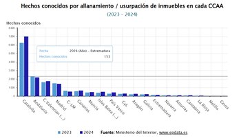 En el caso de las provincias, la situación es muy similar. Barcelona es la que tiene un mayor volumen de casas okupadas en el mercado: 6.587 viviendas. Le siguen Madrid (1.542 viviendas), Murcia (1.395 viviendas), Alicante (1.265 viviendas), Málaga (1.254 viviendas), Sevilla (1.222 viviendas), Girona (1.101 viviendas) y Tarragona (1.001 viviendas), las únicas con más de 1.000 unidades. En el lado opuesto está la provincia de Soria, con una sola vivienda, y tras ella se sitúan Palencia (15 viviendas), Teruel (16 viviendas) y Ávila (19 viviendas).