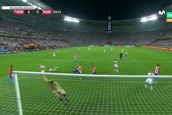 Il servizio di Cueva ha raggiunto la testa dell'attaccante Gianluca Lapadula che ha collegato e schiantato la palla sulla traversa dopo l'intervento felino del portiere Guarani Antony Silva. Nel primo tempo anche il 'Bambino' ha mandato il suo tiro al palo. Dopo 5 minuti, il giocatore italo-peruviano ha aperto il punteggio a favore del bicolore (5").
