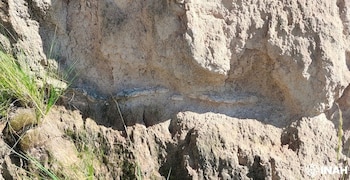 En cuanto al gliptodonte, se recuperaron dos fragmentos del caparazón y varios osteodermos sueltos. El caparazón no se halló completo ni en posición anatómica, aunque uno de los fragmentos presenta el dibujo en roseta característico de este grupo de megafauna.
