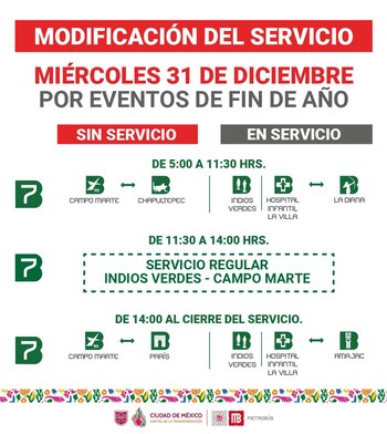 El Metrobús recuerda que este miércoles 31 de diciembre habrá modificaciones en el servicio de la Línea 7.